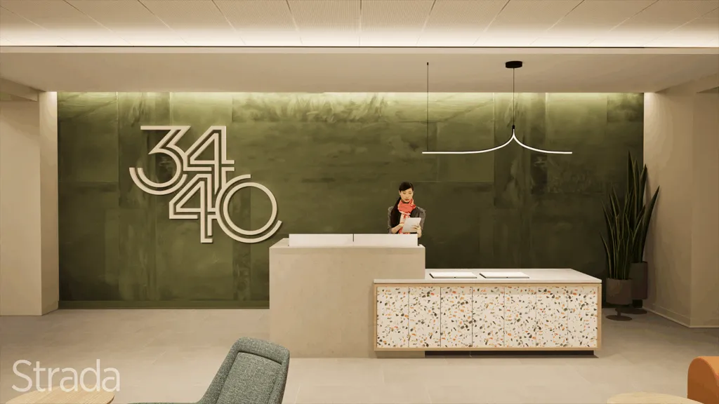 The project scope at 3440 Market Street includes exterior improvements such as painting the north and east façades of the building to protect the structure from weather-related wear. The main entrance will receive upgrades to the entrance canopy and modernization of the door system to improve functionality, accessibility, and aesthetics. The existing inset area adjacent to the entrance will be refreshed with a new paint, the installation of curated artwork to create visual interest, and upgraded lighting to enhance visibility and safety. Interior work involves a complete renovation of the first-floor lobby, including new finishes and lighting to create a more welcoming and functional space. Additionally, the second-floor office space will be fully demolished to make way for future use, and the existing second-floor bathroom will be renovated with updated fixtures, finishes, and improved accessibility features.