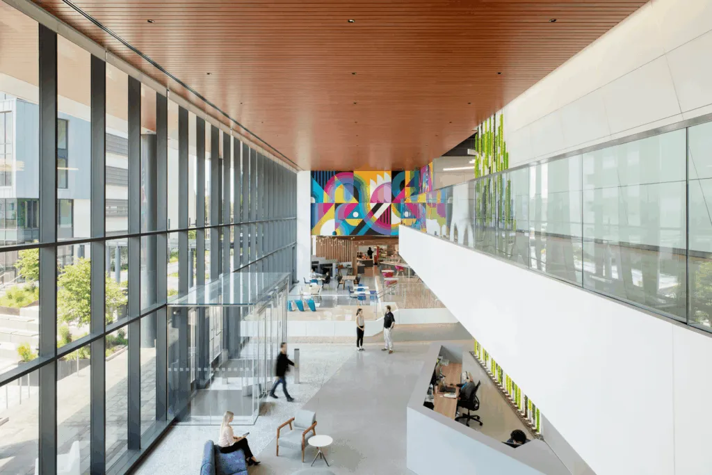 Located in the heart of Conshohocken, SORA West is the new home of Cencora’s Corporate Headquarters. Serving as an anchor for the mixed-use development, the 11-story building includes office and amenity space and two lower levels of parking, totaling 427,000 SF. With spaces designed to strengthen collaboration, the new headquarters houses approximately 1,400 AmerisourceBergen associates. To attract and retain employees, the new headquarters offers amenities, including a fitness center, on-site dining services, a training facility, and a community plaza on the lower floors. The new state-of-the-art facility incorporates high-end finishes throughout, with a monumental stair to anchor the main entrance lobby. The project has achieved LEED Silver Certification.