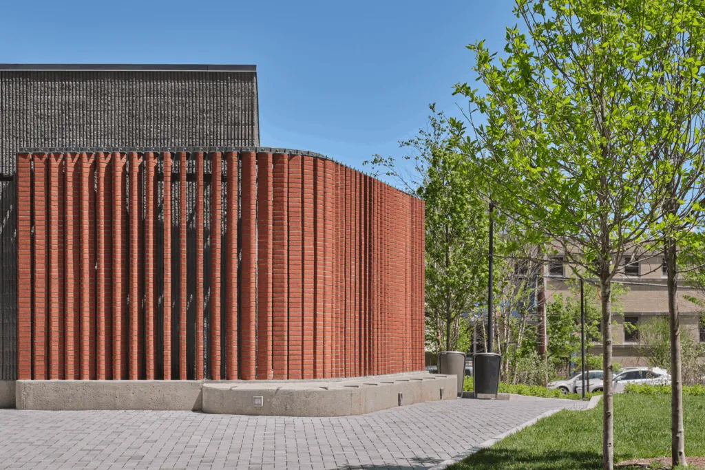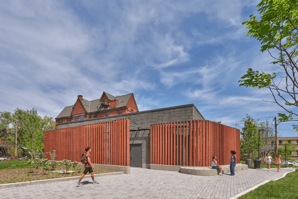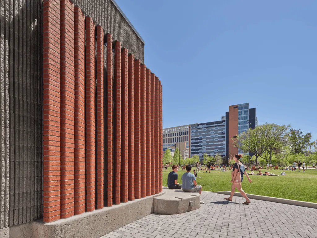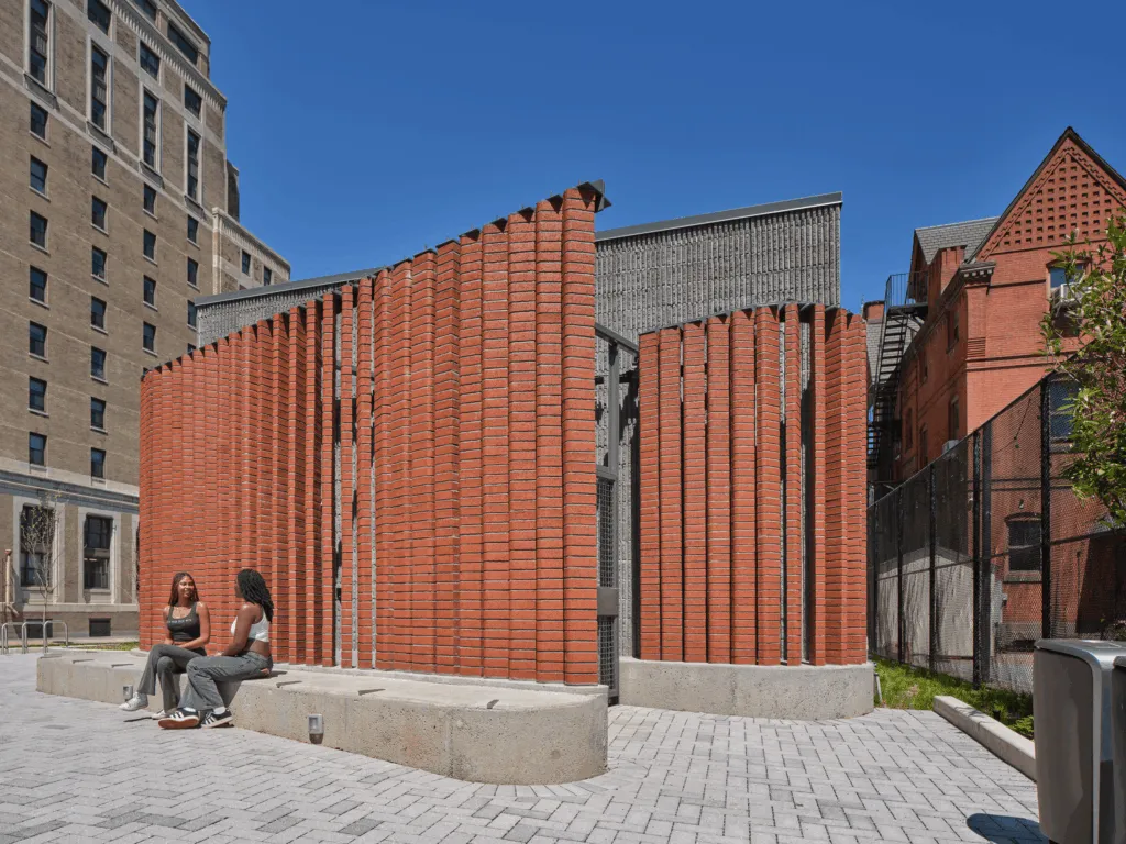 The site is considered a front lawn for students at Drexel University, comprising a non-regulation playing field and green space for casual gathering, framed by 16,000 square feet of native planting beds, porous pavers on the paths, and a plaza with seating. The new switchgear building is wrapped with a decorative brick screen that envelopes the utilitarian structure and pivots across the façade in varying transparencies, adding movement and adapting it to the landscape. The site included stormwater management design and required approvals from the Philadelphia Water Department and the Pennsylvania Department of Environmental Protection.