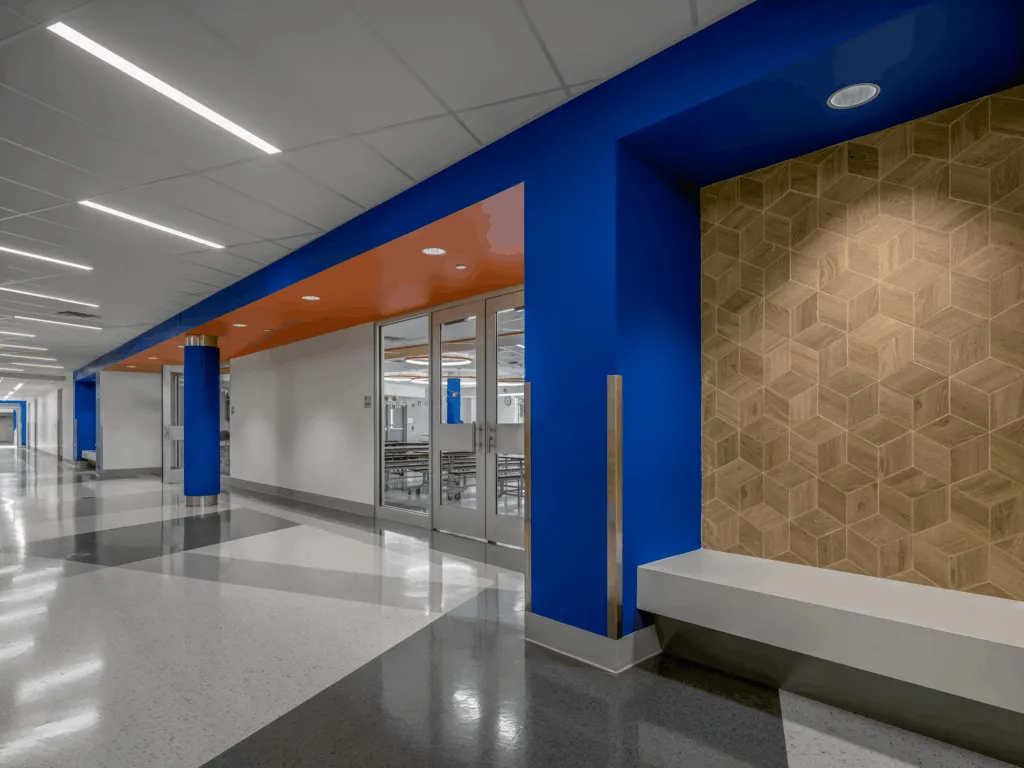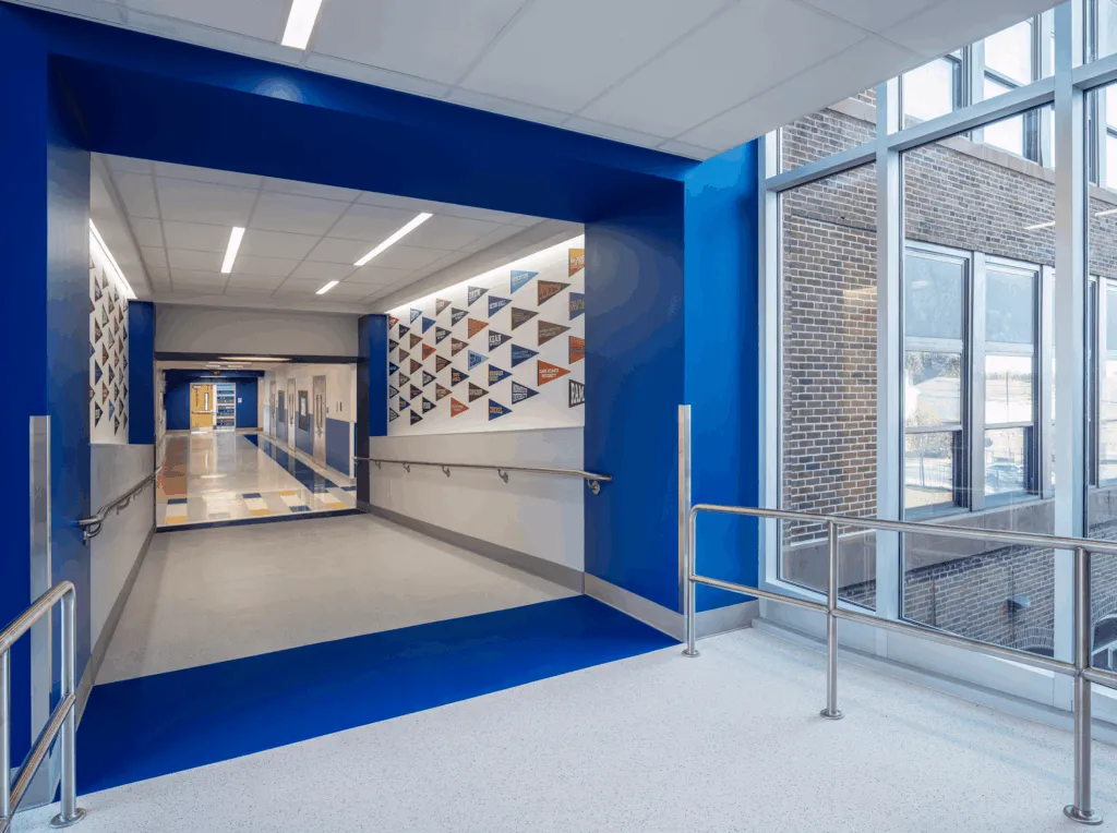 The Whittier Middle School project consisted of a two-story 57,000-square-foot addition and a three-story 17,000-square-foot renovation. The addition included new classrooms, new labs, a new kitchen/cafeteria, a connection to the existing school, and miscellaneous office space. Upgrades to the gymnasium, locker rooms, and weight rooms support the school’s athletics department.