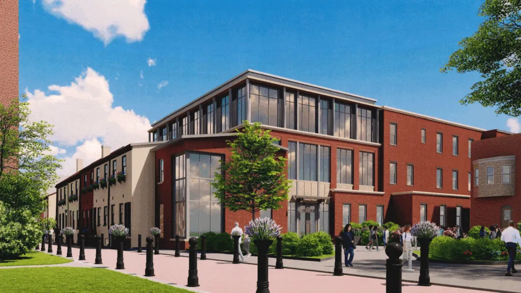 The scope of the project includes the partial demolition of existing structures and the merging of seven standalone buildings into a unified facility. The three-story building will feature a historic renovation, including a restored façade and roof replacement, as well as the interior fit-out of administrative office spaces. The new addition will create a landmark gateway to the campus while respecting the historical context within the Cooper Street Historic District.