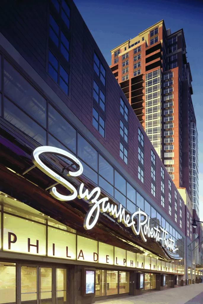 The Philadelphia Theatre Company’s new home on the Avenue of the Arts features a 365-seat proscenium theatre, a fully isolated stage house and auditorium, a 2,000 SF stage with trap room, and a 68’ fly loft. The dramatic lobby and mezzanine level reception areas have commanding views of the city, as well as superior patron amenities. High-scale finishes include glass-reinforced, stained gypsum panels, leather wall tiles, wood trim, and plush upholstered seats.
