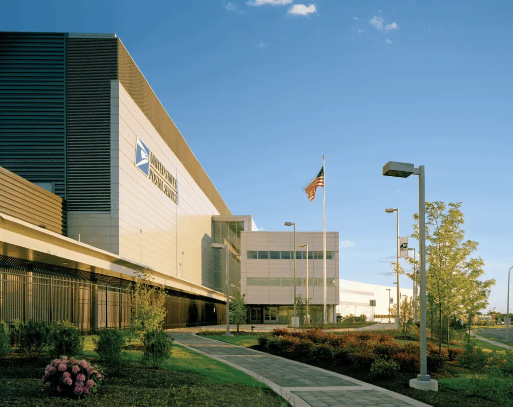 This project is a four-story mail sorting and distribution facility with an adjoining 36,000-square-foot administration building. A state-of-the-art mechanization system is at the heart of the sorting facility. The building features a metal siding exterior skin with precast and curtainwall systems. A structural steel framing system rests on pile foundations. Site development for the project helped prepare for the surrounding landscaped areas as well as visitor and employee parking lots. This project was an INTECH/JE Dunn joint venture.